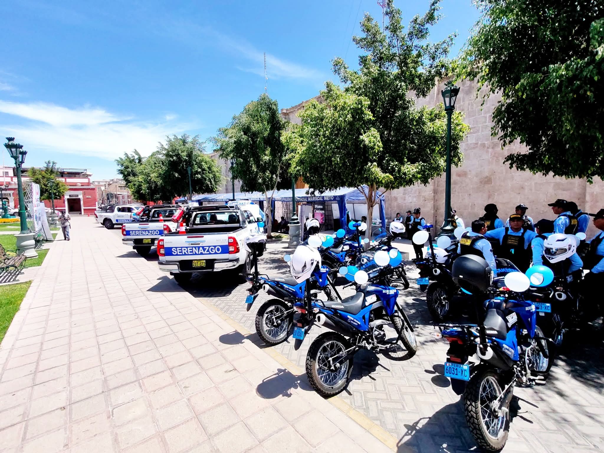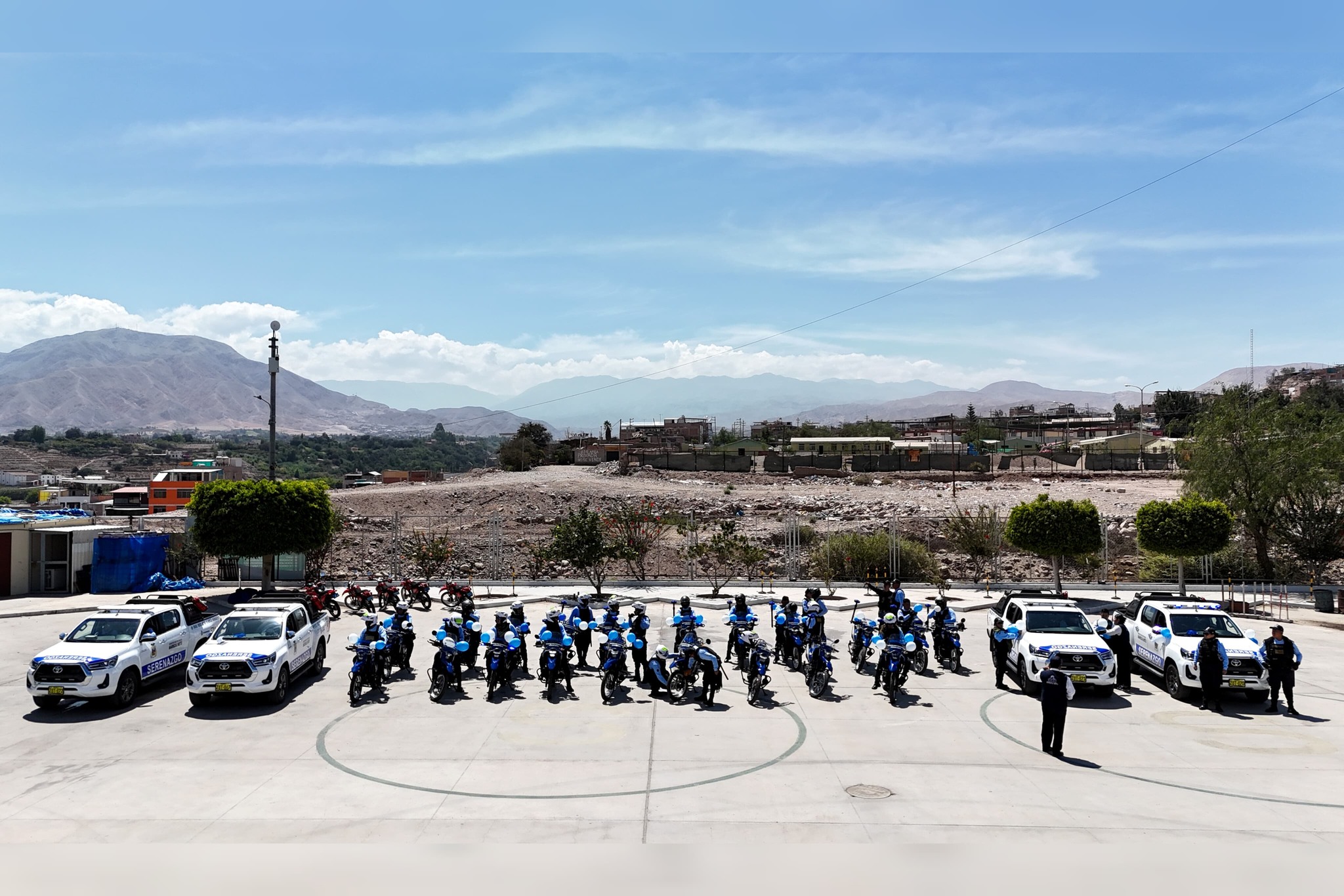 El equipamiento entregado comprende 20 motocicletas Honda año 2024, cero kilómetros, con SOAT vigente, capacitación y mantenimiento, además de sirenas, parlantes, micrófonos inalámbricos, cascos certificados y equipos de protección. Asimismo, se incorporaron 04 camionetas Toyota 4×4 año 2025, con cinco años de garantía, equipadas con radio base, barra LED, megáfono, sirena, extintor y accesorios de abordaje.